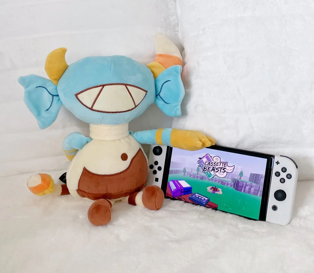 From the award winning game Cassette Beasts comes Candevil. Candevils possess the peculiar ability to generate sugary sweets from their bodies, which can be used as gifts or as ballistic projectiles. Some find this quite charming, whereas others argue that it’s actually very weird and gross.12 inches long, made with soft minky fabric.