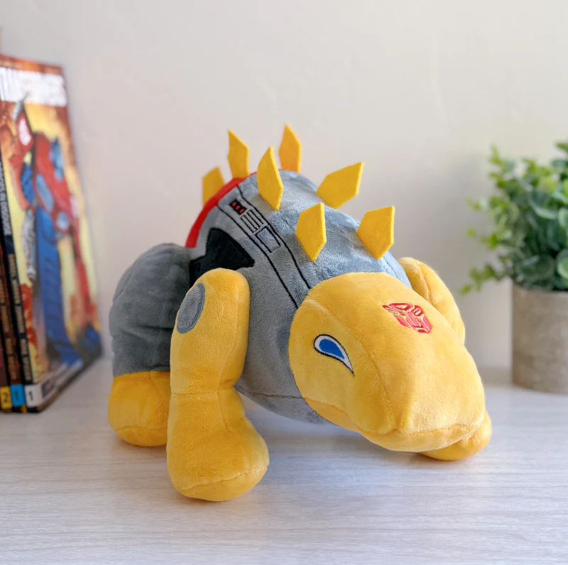 All the embroidered details, the spiked tail, and the armored crest pay tribute to the rough appearance of the Dinobot, transforming him into a cuddly and squishy friend.